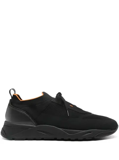 black nubuck leather knitted upper contrasting trim logo pull-tab at the heel sock-style ankle branded leather insole unlined chunky rubber sole front lace-up fastening This piece comes complete with a protective dust bag.