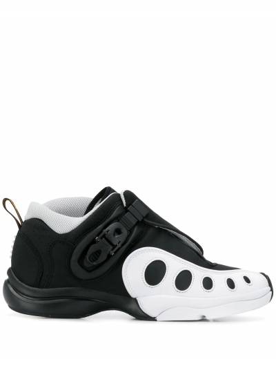 Nike is a pioneering sportswear label with technical innovation and contemporary design at its core. These black and white Zoom GP Canyon sneakers from Nike feature a pull tab at the rear, a clasp fastening, a rubber sole, a signature Nike swoosh, a panelled colour block design, a piped leather trim and cut out details.