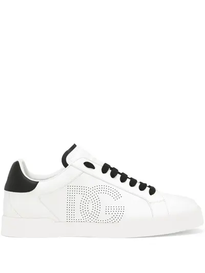 white leather perforated logo detail contrasting heel counter round toe contrasting laces branded insole rubber sole