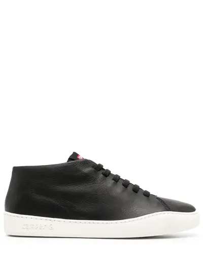 black calf leather recycled polyester logo patch at the tongue front lace-up fastening round toe flat rubber sole branded insole This item is crafted with leather that has been produced in a certified Leather Working Group (LWG) or ICEC tannery, ensuring the production process has a reduced environmental impact. Learn more about what makes a product Conscious on our Conscious Criteria page