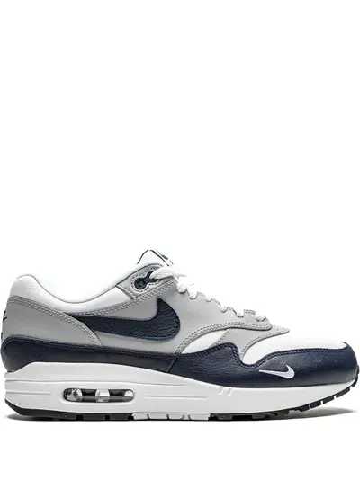 White/grey/black leather/rubber Air Max 1 LV8 sneakers from NIKE featuring signature Swoosh logo detail, contrasting panel detail, round toe, front lace-up fastening, logo patch at the tongue and rubber sole with Max Air cushioning. These styles are supplied by a premium sneaker marketplace. Stocking only the most sought-after footwear, they source and curate some of the most hard to find sneakers from around the world..