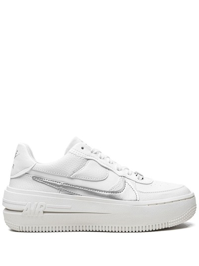 Air Force 1 PLT.AF.ORM sneakers from Nike featuring white, leather, signature Swoosh logo detail, embroidered logo to the rear, round toe, front lace-up fastening, logo-embroidered tongue, branded insole and rubber sole. These styles are supplied by a premium sneaker marketplace. Stocking only the most sought-after footwear, they source and curate some of the most hard to find sneakers from around the world..