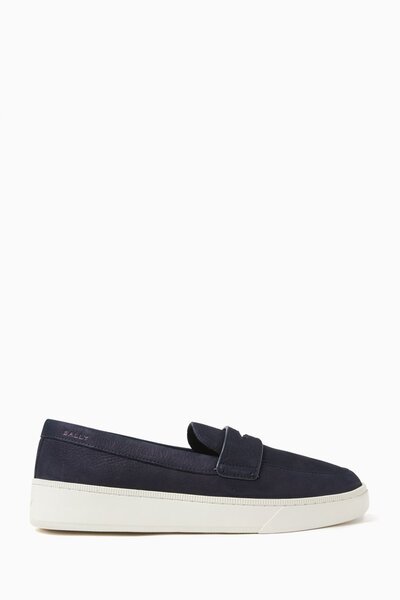 The Bally Raise sneakers offer a modern twist on a classic loafer. • Crafted from luxurious nubuck leather and featuring a thick rubber sole, these sneakers are both comfortable and stylish • The slip-on design and Zahogel footbed ensure all-day comfort, making them perfect for any occasion