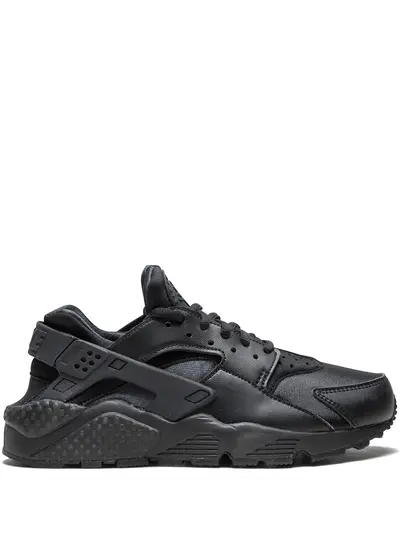 Air Huarache Run "Black/Black" sneakers from Nike featuring black, perforated design, round toe, logo patch at the tongue, front lace-up fastening, branded heel counter and rubber outsole. These styles are supplied by a premium sneaker marketplace. Stocking only the most sought-after footwear, they source and curate some of the most hard to find sneakers from around the world..