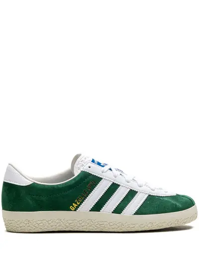 dark green suede/leather signature 3-Stripes logo logo stamp at side contrasting heel counter round toe front lace-up fastening logo-print tongue branded insole rubber sole These styles are supplied by a premium and authenticated sneaker marketplace. Stocking only the most sought-after footwear, they source and curate some of the most hard to find sneakers from around the world.