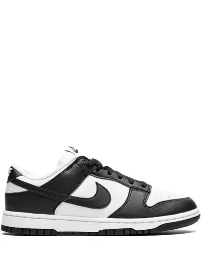 Black/white leather Dunk Low sneakers from NIKE featuring signature Swoosh logo detail, embroidered logo to the rear, two-tone design, round toe, front lace-up fastening, branded insole and rubber sole. These styles are supplied by a premium sneaker marketplace. Stocking only the most sought-after footwear, they source and curate some of the most hard to find sneakers from around the world..