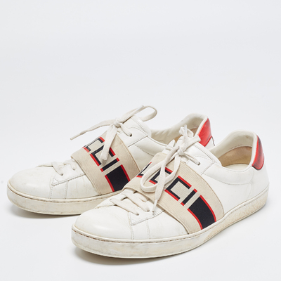 Gucci White Leather Logo Band Ace Sneakers Size 41.5 869083