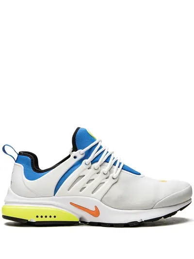Air Presto low-top sneakers from NIKE featuring light grey, blue, orange, yellow, signature Swoosh logo detail, contrasting panel detail, round toe, front lace-up fastening, pull-tab at the heel, branded insole and rubber sole. These styles are supplied by a premium sneaker marketplace. Stocking only the most sought-after footwear, they source and curate some of the most hard to find sneakers from around the world..