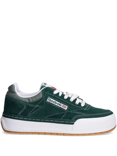 green suede front lace-up fastening padded ankle logo patch at the tongue contrast stitching round toe flat rubber sole