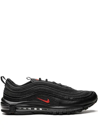 Air Max 97 sneakers from Nike featuring black/red, leather, faux leather, signature Swoosh logo detail, panelled design, mesh detailing, round toe, front lace-up fastening and rubber sole with Max Air cushioning. These styles are supplied by a premium sneaker marketplace. Stocking only the most sought-after footwear, they source and curate some of the most hard to find sneakers from around the world..