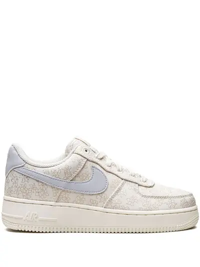 Air Force 1 '07 SE JACQ sneakers from Nike featuring light grey, light blue, canvas, all-over floral embroidery, signature Swoosh logo detail, round toe, front lace-up fastening, logo patch at the tongue, branded heel counter, signature Air cushioning and flat rubber sole. These styles are supplied by a premium sneaker marketplace. Stocking only the most sought-after footwear, they source and curate some of the most hard to find sneakers from around the world..