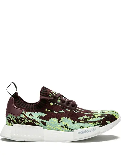 Maroon, black and blush green NMD R1 PK sneakers from adidas featuring a round toe, a signature Primeknit upper, a lace-up front fastening, a pull tab at the rear and a white rubber sole. Supplied by a premier sneaker marketplace dealing with unworn, already sold out, in demand rarities. Each product is rigorously inspected by experienced experts guaranteeing authenticity.