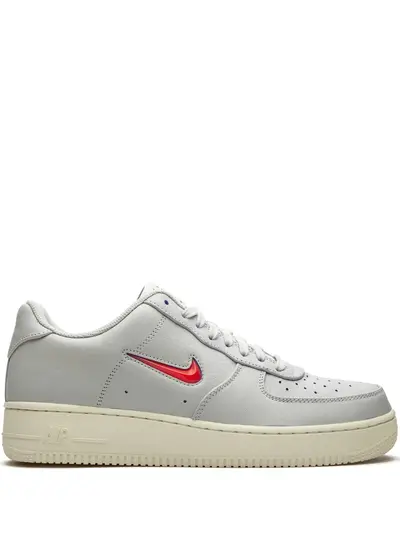Vast grey/challenge red leather Air Force 1 '07 PRM sneakers from NIKE featuring round toe, front lace-up fastening, logo patch at the tongue, perforated detailing, signature Swoosh logo detail and flat rubber sole. These styles are supplied by a premium sneaker marketplace. Stocking only the most sought-after footwear, they source and curate some of the most hard to find sneakers from around the world.
