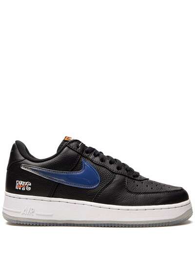 Black leather Air Force 1 Low sneakers from NIKE featuring signature Swoosh logo detail, embroidered logo to the side, round toe, front lace-up fastening, logo patch at the tongue, branded insole and rubber sole. These styles are supplied by a premium sneaker marketplace. Stocking only the most sought-after footwear, they source and curate some of the most hard to find sneakers from around the world..