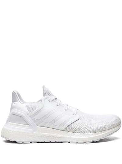 Ultraboost 20 low-top sneakers from adidas featuring white, signature 3-Stripes logo, round toe, front lace-up fastening, logo patch at the tongue, branded insole and rubber sole. These styles are supplied by a premium sneaker marketplace. Stocking only the most sought-after footwear, they source and curate some of the most hard to find sneakers from around the world..