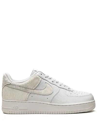 Air Force 1 "White Pony Hair Heel" sneakers from Nike featuring white, leather, pony hair, panelled design, signature Swoosh logo detail, round toe, perforated toebox, front lace-up fastening, branded heel counter, signature Air cushioning and flat rubber sole. These styles are supplied by a premium sneaker marketplace. Stocking only the most sought-after footwear, they source and curate some of the most hard to find sneakers from around the world..