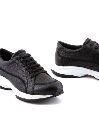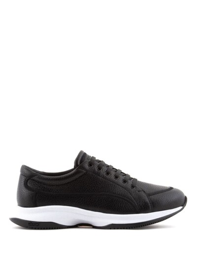 Черный/белый, оленья кожа, зернистая текстура, нашивка с логотипом на язычке, люверсы, миндалевидный носок, шнуровка спереди и плоская резиновая подошва.