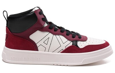 Кеды мужские, обувь для скейтбординга высокая винно-красный/белый Armani Exchange xuz040xv601n482 | white/rose/wine