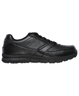 Добавьте защиту и поддержку в свой рабочий день в элегантном силуэте с мужскими повседневными кроссовками Skechers Work Relaxed Fit - Nampa Slip Resistant Work Casual. Эти рабочие кроссовки с нескользящим дизайном и гладким материалом с текстурой кожи сочетают в себе моду и удобство.