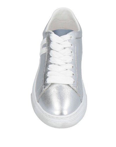 Кожа, эффект ламинирования, логотип бренда, бусины, одноцветное изделие с аппликациями, кожаная подкладка, шнуровка, скругленный носок, плоская поверхность, резиновая подошва с тиснением, содержит нетекстильные части животного происхождения, низкие кеды и кроссовки