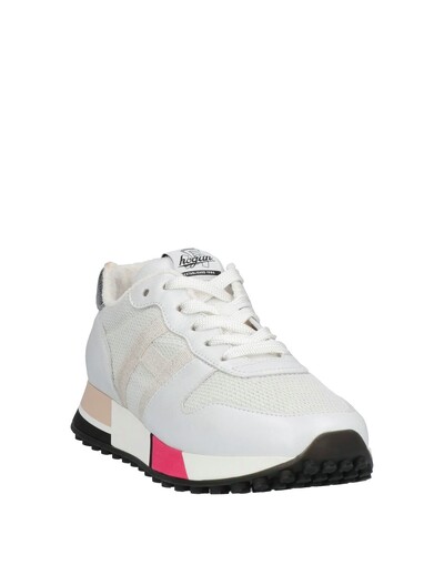 Кожа, техническая ткань, ламе, эффект ламинирования, логотип бренда, разноцветный рисунок, кожаная подкладка, шнуровка, скругленный носок, без каблука, резиновая подошва с тиснением, содержит нетекстильные части животного происхождения, массивные кроссовки