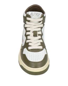 Кожа, логотип бренда, двухцветное изображение, кожаная подкладка, шнуровка, скругленный носок, плоская поверхность, резиновая подошва с тиснением, содержит нетекстильные части животного происхождения, высокие кеды и кроссовки