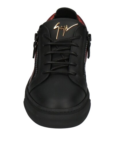 Кожа, эффект ламинирования, логотип бренда, двухцветный цвет, подкладка из кожи, шнуровка, застежка-молния, скругленный носок, плоская поверхность, резиновая подошва с тиснением, содержит нетекстильные части животного происхождения, низкие кеды и кроссовки