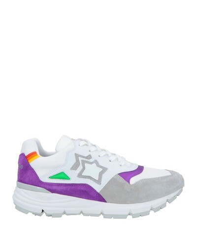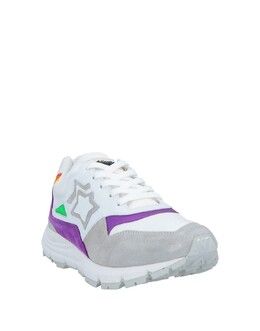 Кожа, техническая ткань, эффект замши, логотип бренда, разноцветный рисунок, внутренняя поверхность из технической ткани, шнуровка, скругленный носок, без каблука, резиновая подошва с тиснением, содержит нетекстильные части животного происхождения, низкие кеды и кроссовки