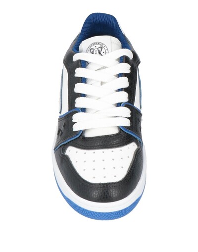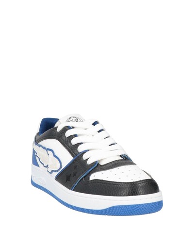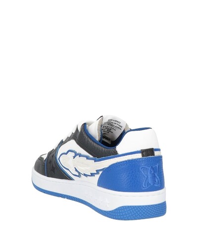 Кожа, контрастные аппликации, логотип бренда, разноцветный рисунок, внутренняя часть из технической ткани, шнуровка, скругленный носок, плоская поверхность, резиновая подошва с тиснением, содержит нетекстильные части животного происхождения, низкие кеды и кроссовки