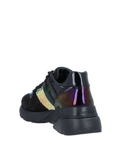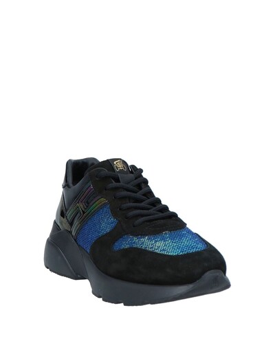 Кожа, светоотражающая отделка, пайетки, разноцветный узор, кожаная подкладка, шнуровка, скругленный носок, плоская подошва с резиновым тиснением, содержит нетекстильные части животного происхождения, низкие кеды и кроссовки