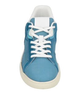 Кожа, техническая ткань, логотип бренда, двухцветное изображение, внутренняя часть из технической ткани, шнуровка, скругленный носок, без каблука, резиновая подошва с тиснением, содержит нетекстильные части животного происхождения, низкие кеды и кроссовки