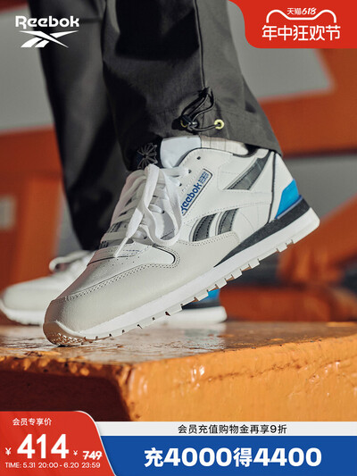 Кроссовки унисекс Reebok CL Leather для спорта и отдыха, белый / синий 758526248068 | 100074394 白/蓝