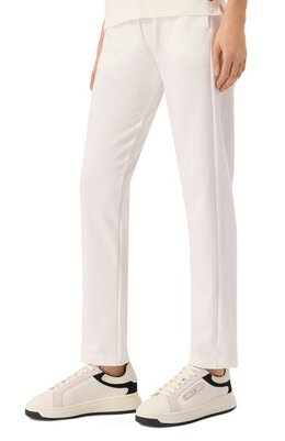 Кеды из белой коровьей кожи top grain отделаны серой и черной замшей. Гамму поддерживают двухслойная подошва и сетчатая внутренняя отделка. Боковая панель украшена металлической пряжкой со знаковым тотемным орлом, а язычок – брендированным патчем.