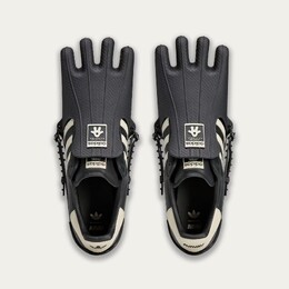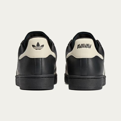 Avavav сделал свой вариант кроссовок adidas Superstar. Это смешение миров adidas и Avavav. Кроссовки adidas Superstar дополнены аксессуаром, отсылающим к мотиву четырех пальцев Avavav. Ремешок позволяет снять крепление, поэтому кроссовки можно носить без него. Аксессуар также можно использовать с другой обувью. Сами кроссовки выполнены из первоклассной зернистой кожи с резиновой подошвой, резиновой подошвой и, конечно же, культовым резиновым носком.