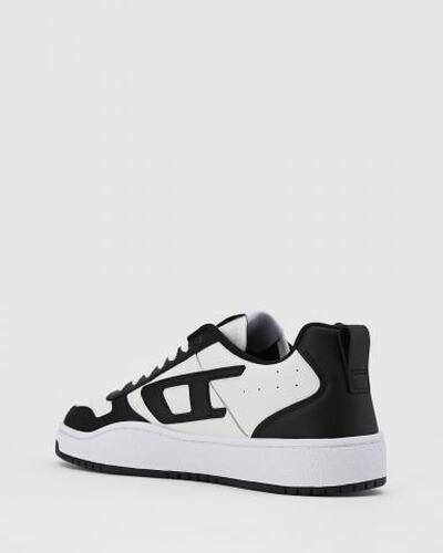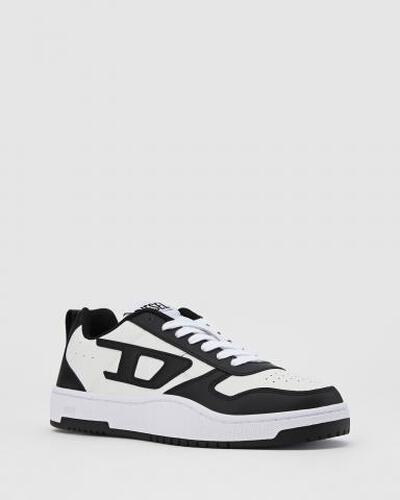 Кроссовки Diesel из натуральной кожи в чёрно-белом цвете. Женские низкие кроссовки выполнены из мягкой кожи с логотипом D сбоку. Подкладка из текстильной ткани дополнена резиновой подошвой с зубчатой частью, обеспечивающей надежное сцепление с любой поверхностью. Перфорация обеспечивает приток воздуха. Материал стельки - текстиль.