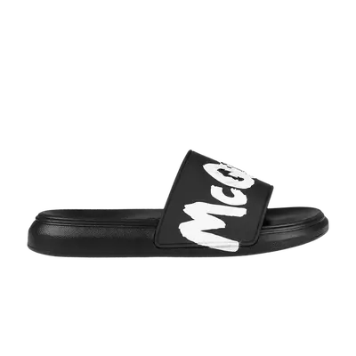 Кроссовки Alexander McQueen Wmns Rubber Pool Slide Graffiti Logo - Black White, черный 686931 w4qs3 1070 | graffiti logo - black white