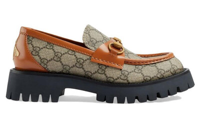 Кроссовки gg canvas platform loafers horsebit 'brown leather' Gucci, коричневый 723283-faa0q-9790 | brown/beige/ebony