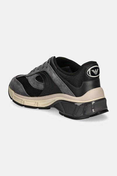 Кроссовки Emporio Armani изготовлены из замши, ткани и синтетического материала. Модель с удобной и легко чистящейся тканевой стелькой.