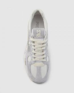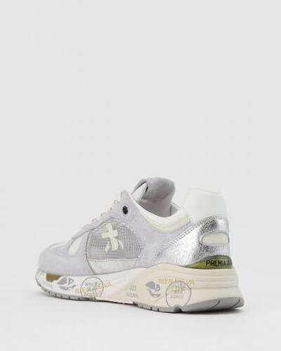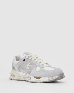 Серые кроссовки Premiata поддержат образ в спортивном стиле. Модель выполнена из сочетания текстиля и замши. Внутри подклад и стелька из натуральной кожи. Резиновая подошва дополнена фирменным принтом, а завершает дизайн нашивка с логотипом бренда. За счет базового сочетания оттенков, пара легко впишется и в повседневные образы с джинсами и спортивными трикотажными брюками.