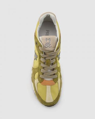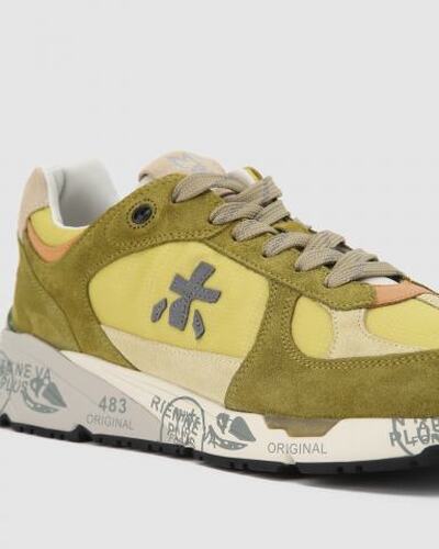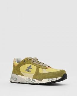 Кроссовки Premiata в оттенках зелёного поддержат образ в спортивном стиле. Модель выполнена из сочетания текстиля и замши. Внутри подклад и стелька из натуральной кожи. Резиновая подошва дополнена фирменным принтом, а завершает дизайн нашивка с логотипом бренда. За счет базового сочетания оттенков, пара легко впишется и в повседневные образы с джинсами и спортивными трикотажными брюками.