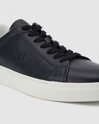 Кроссовки Baldinini из натуральной кожи в тёмно-синем цвете. Надежные кроссовки, сочетающие в себе удобство и стиль. Перфорация на коже делает пару идеальным вариантом для тёплого сезона. Резиновая подошва и фирменный логотип сбоку завершают образ. Подкладка выполнена из текстиля, стелька - из натуральной кожи.