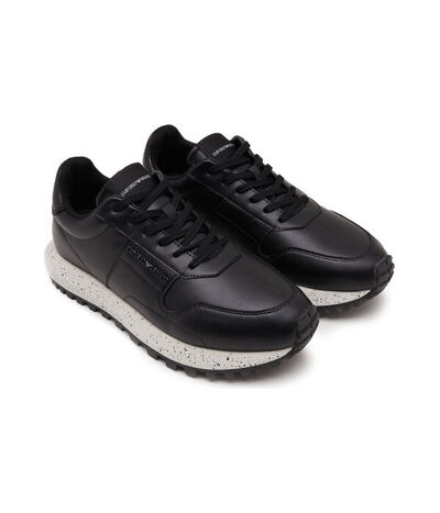 Кроссовки мужские Emporio Armani кожаные с контрастной подошвой, черный ea235m0000440020040 | nero