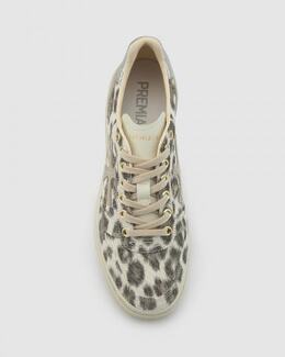 Кроссовки Premiata с анималистичным принтом разнообразят спортивные и повседневные образы. Модель выполнена из плотной текстильной ткани и кожи. Фирменная подошва из резины обеспечит комфорт, а значит кроссовки идеально подойдут на каждый день. Принт на двухуровневой подошве, вставки из блестящей кожи на заднике и лейбл сбоку поддерживают неповторимый стиль бренда.