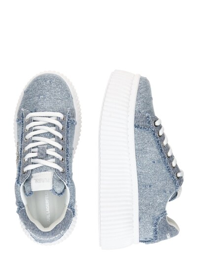 Бренд: Karl Lagerfeld Цвет: синий деним Принт с логотипом Деним На платформе Круглый вырез шнуровка с 6 отверстиями Подошва с протектором Усиленный каблук С драгоценными камнями Нашивка с этикеткой / флажок с этикеткой Гибкая подошва Застежка на шнурке