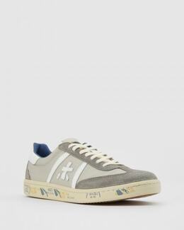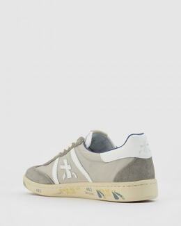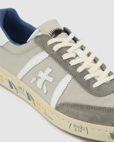 Кеды Premiata в светло-сером цвете помогут разнообразить повседневные образы. Модель выполнена из текстильной ткани и натуральной замши, на резиновой подошве. Внутри подклад и стелька из кожи. Пара дополнена нашивкой в виде логотипа бренда из белой кожи, белым кожаным задником и фирменным принтом на подошве. Кеды можно сочетать как с брюками разных фасонов, так и с джинсами.
