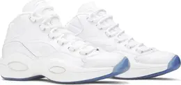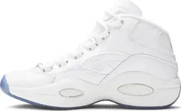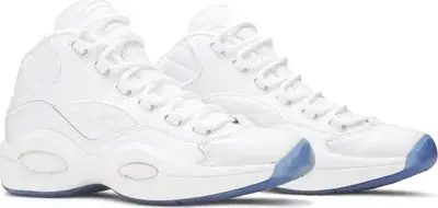 Кроссовки Reebok Question Mid «Blue Sole» имеют полностью белый кожаный верх и перламутровый носок, напоминающий расцветку OG «Red Toe», которую Аллен Айверсон носил во время своего новичка. Соответствующая белая межподошва из EVA с видимой амортизацией Hexalite продолжает монохромную тему. Подошва из синей полупрозрачной резины обеспечивает надежную амортизацию и яркий контрастный цвет.
