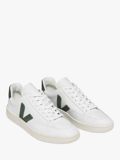 Кожаные кроссовки на шнуровке v12 Veja, цвет Extra White/Cyprus 39219701 | extra white/cyprus