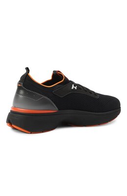 Кроссовки Bounce из трикотажа поставили на амортизирующую подошву в тон, подчеркнув ее деталями фирменного оттенка Arancio Santoni. В оранжевый цвет окрасили также полосу на манжете и стежок на кожаном заднике со знаковой патиной velatura.