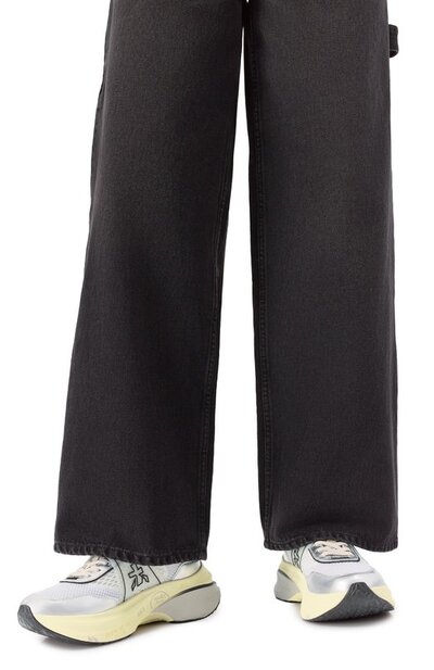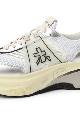 Кроссовки Hill выполнили из эластичной сетки и гладкого металлизированного материала, а для внутренней отделки использовали козью кожу. Модель с фирменными печатями на легкой подошве из EVA декорировали по бокам гибкими полимерными накладками с эмблемами-иероглифами, а на язычке – патчем с логотипом.
