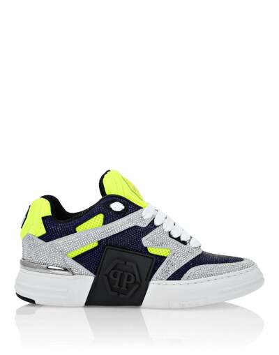 Кроссовки из микса кожи Lo-Top со стразами Philipp Plein, темно-синий/желтый 7919888236604 | darkblue/yellow